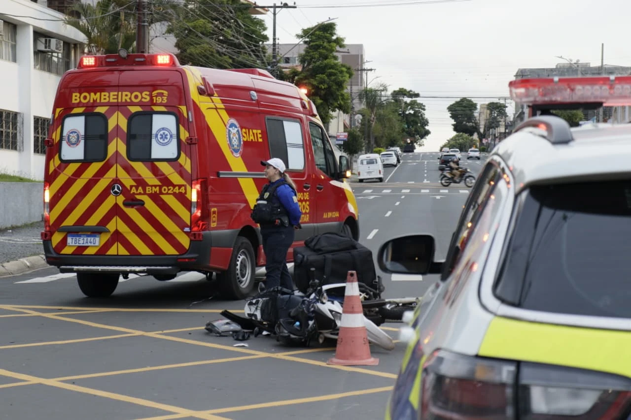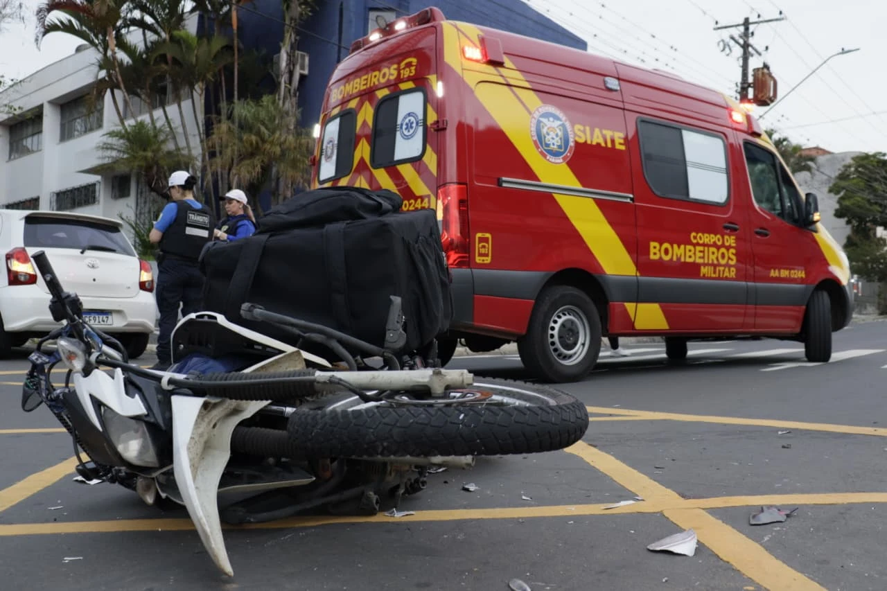 Uma colisão entre uma motocicleta e um automóvel foi registrada no final da tarde desta terça-feira (16), no cruzamento da Avenida Balduíno Taques com a Rua Saldanha da Gama. O acidente mobilizou equipes de atendimento de emergência e do trânsito viário.