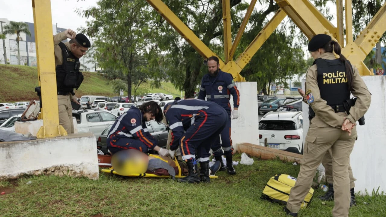 Equipes da Polícia Militar e do Samu foram acionadas na tarde desta terça-feira (16) para atender uma ocorrência de ferimento por arma branca em frente a uma loja da rede Havan. O atendimento ocorreu na Rua Catão Monclaro, esquina com a Avenida Bispo Dom Geraldo Pellanda, embaixo de uma passarela.